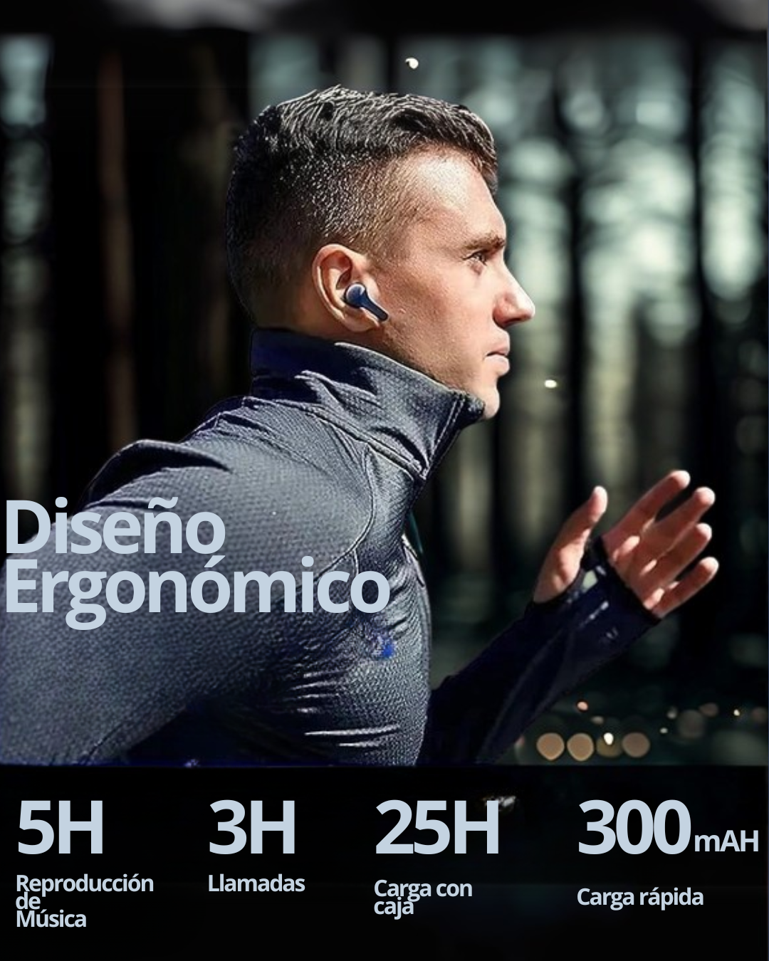 Lo que significa que puedes escuchar música todo el día, entrenar o trabajar sin preocuparte por quedarte sin batería. 🔄🔋