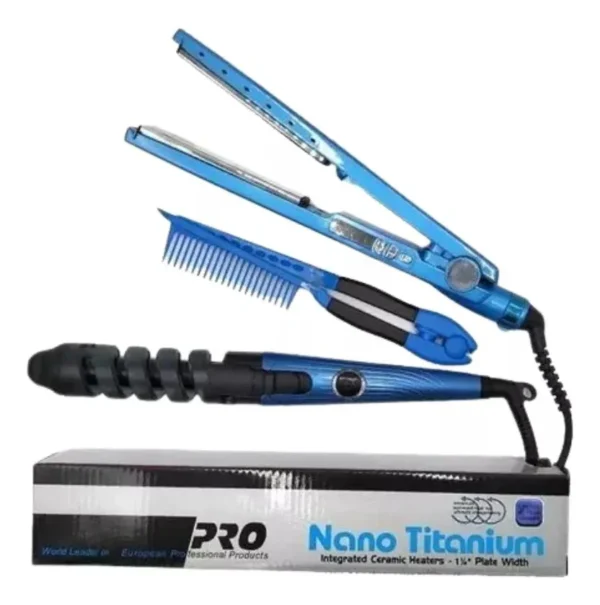 Combo Profesional de Plancha Rizador y Peine para Cabello Versatilidad y Estilo en tus ManosLogra cualquier peinado que desees con nuestro completo combo profesional dise ado para ofrecerte versatilidad y resultados de sal n desde la comodidad de tu hogar Este kit esencial incluye una plancha de cabello un rizador de espiral y un peine de alisado cubriendo todas tus necesidades de estilizado Este set incluye Plancha de Cabello Alisadora Equipada con placas de alta calidad para un alisado ultra suave y brillante reduciendo el frizz y protegiendo el cabello Alcanza altas temperaturas para un alisado eficiente Rizador de Espiral Crea rizos definidos y uniformes sin esfuerzo Su dise o en espiral gu a el cabello para obtener bucles perfectos y duraderos Peine de Alisado Un peine robusto y preciso ideal para desenredar antes de planchar seccionar el cabello o para un acabado pulcro Caracter sticas Destacadas Tecnolog a Avanzada Nano Titanium Las placas de la plancha est n dise adas para distribuir el calor de manera uniforme lo que ayuda a prevenir da os por calor excesivo y proporciona un acabado sedoso Dise o Ergon mico Todas las herramientas est n dise adas para un agarre c modo y un manejo sencillo facilitando el proceso de peinado Color Moderno y Vibrante El set presenta un atractivo color azul que le da un toque de estilo a tus herramientas de belleza Versatilidad de Peinados Desde liso impecable hasta rizos voluminosos y definidos este combo te permite experimentar con diferentes estilos con facilidad Uso Profesional y Dom stico Ideal para estilistas o para uso personal diario garantizando resultados profesionales Beneficios Clave Consigue m ltiples estilos de cabello con un solo kit Resultados de peluquer a en casa Protege el cabello del calor excesivo con uso adecuado Herramientas duraderas y de alto rendimiento Define tu estilo y transforma tu cabello con este combo esencial de plancha rizador y peine tu aliado para un look perfecto en cada ocasi n Mantente al d a de lo que nos van llegando y mucho mas https chat whatsapp com Gx5uDYxwOFv1hjLDNFqjU0 Manejamos los mejores precios de TODO ECUADOR Precio Especial de mayoristas 10 50 USD Si desea que le guardemos stock o privaticemos el producto con precio especial aplica NICAMENTE despu s de un pago anticipado de 24 unidades