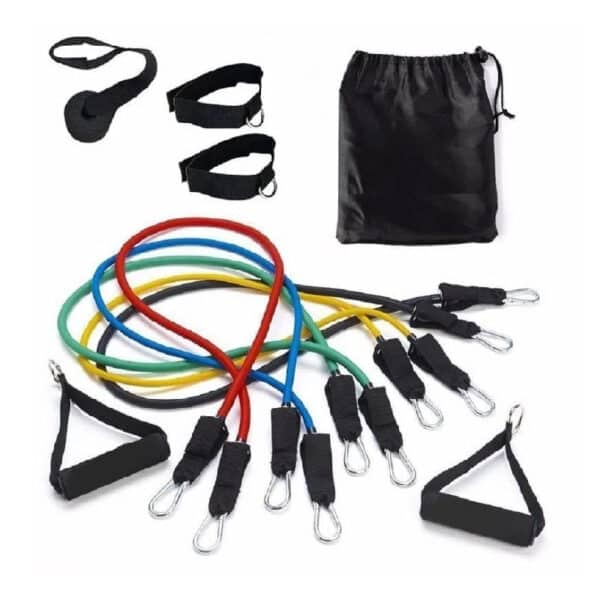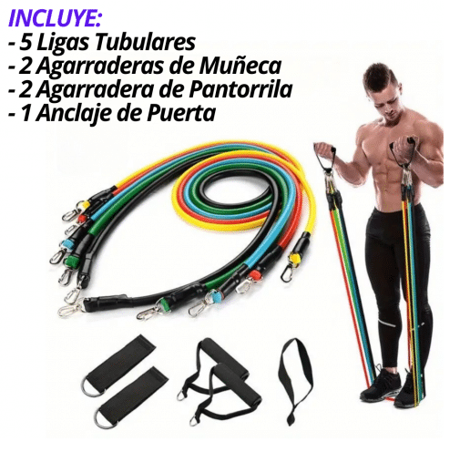 Incluye: Bandas, manijas ergonómicas, anclaje para puerta, tobilleras y bolso de transporte
