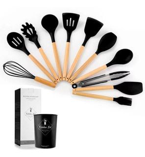 Este juego de cocina incluye una brocha de pasteler a peque a una esp tula una cuchara un batidor una espumadera una cuchara para servir una esp tula grande pinzas de cocina Mangos dise ados ergon micamente para facilitar la limpieza F cil de almacenar La forma perfecta se puede colgar de cualquiera de los extremos para facilitar el almacenamiento